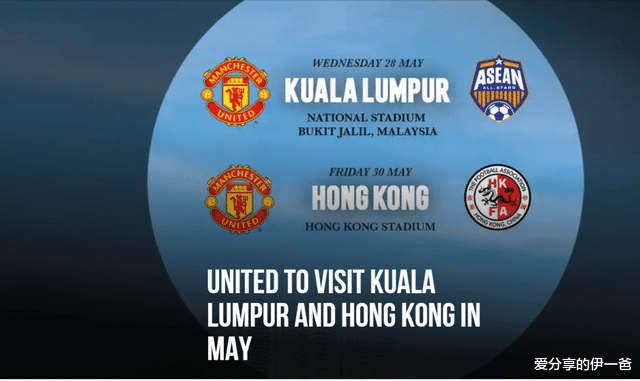 北京时间4月8日下午,曼联俱乐部官方发布公告,宣布将于今年5月底前往吉隆坡和中国香港进行两场季后巡回赛。